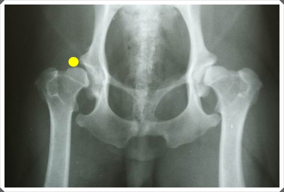 如果以下面這張來看的話,左腳是是整個包覆著屬於正常的,右腳才有髖關節不在圈圈內...