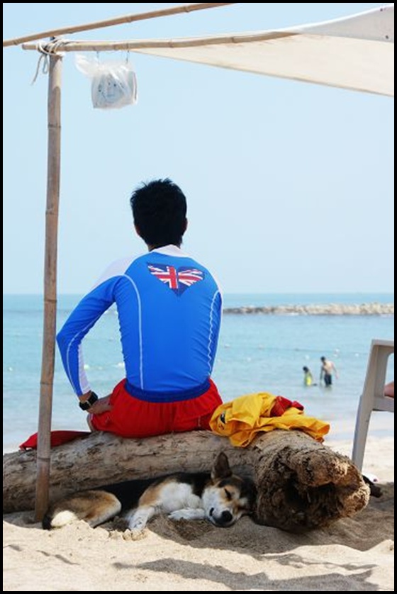 這裡都有救身員駐守,突然看到這裡的狗狗躲在救身員的後面,