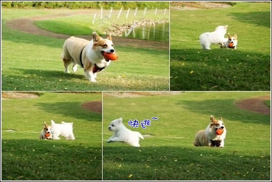 但是,YUKI一撿球回來愈來愈近時,他就很識相的快逃啊~YUKI有用斜眼瞪他哦!噗~
