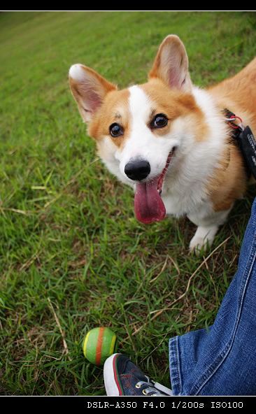 一直用嘴巴頂我的包包,硬要我拿球出來,陪她玩你丟我撿...