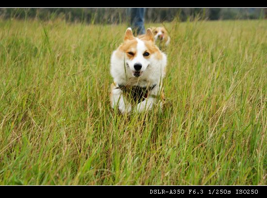 結果,草太長了,三犬都跳著跑,好像兔子哦!超級卡娃伊....