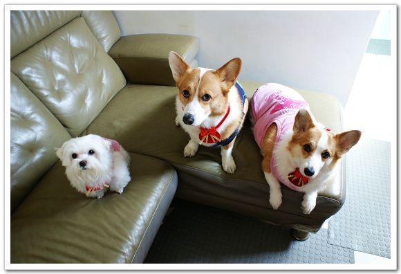 除夕當天早上幫三犬洗了香噴噴的澡,也讓他們穿了新衣服,準備過年囉!