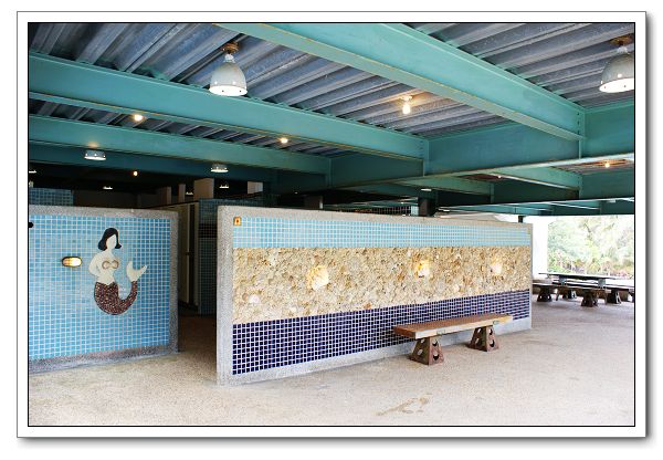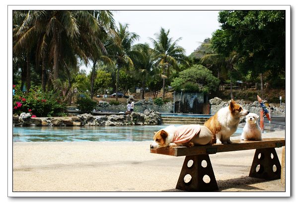 男女廁所、淋浴間,空間、數量都蠻多的,而且都非常的乾淨!我們游泳,三犬就在岸邊發呆...