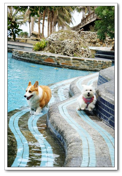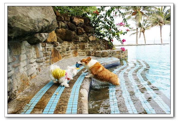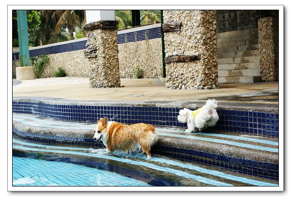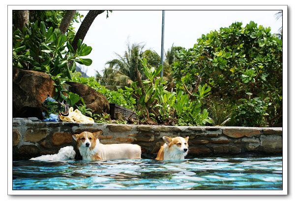 我們游泳,三犬就在岸邊發呆...他們還沒有勇氣跳下來!