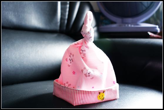 當然,嬰兒鞋是不能少的囉!剛好配一套,粉紅色的貓熊裝,是不是超口愛的啊!