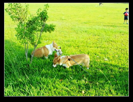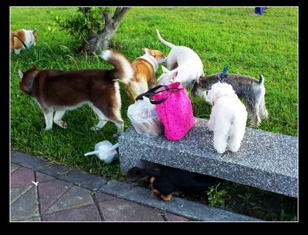 哇~好多種狗類哦!聯合國...大家都忙著認識認識...