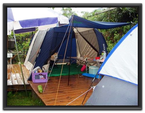 不過還好有帶遮風擋雨的"客廳帳,不然真的會變成落湯雞吶...