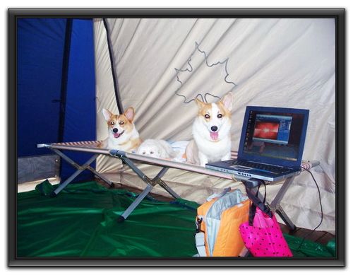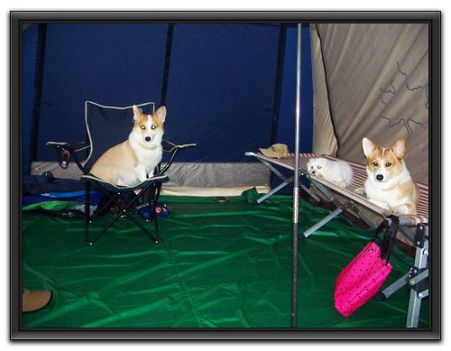 因為怕有的營地太髒,所以買了行軍床,讓三犬在上面休息,我覺得很實用方便哦!