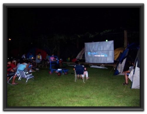 當場在營地中間播放起"電影",小朋友都拿著椅子排排坐好等著看好戲...