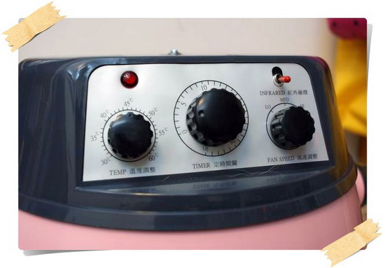 聽說這台是最新款的,有三個按鈕,可以調溫度、時間、風量,還有紅外線功能...我買的是粉紅色的!